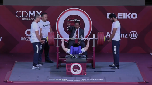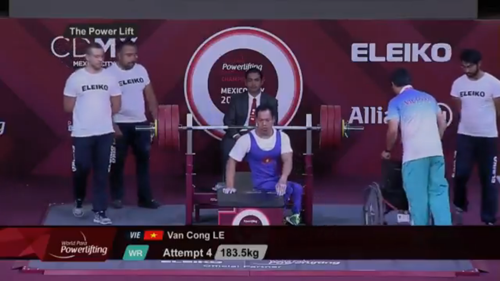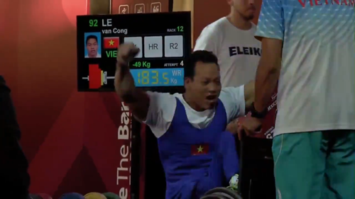 | Chiến thắng đã đến với Lê Văn Công ở lần nâng tạ thứ 4 (183,5 kg). Ảnh: Video Paralympic.org |