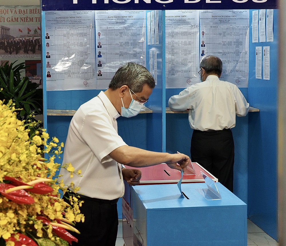 Tổng Giám mục Giuse Nguyễn Đăng – Tổng giáo phận TP.HCM, bỏ phiếu thực hiện quyền công dân tại điểm bầu cử số 34.