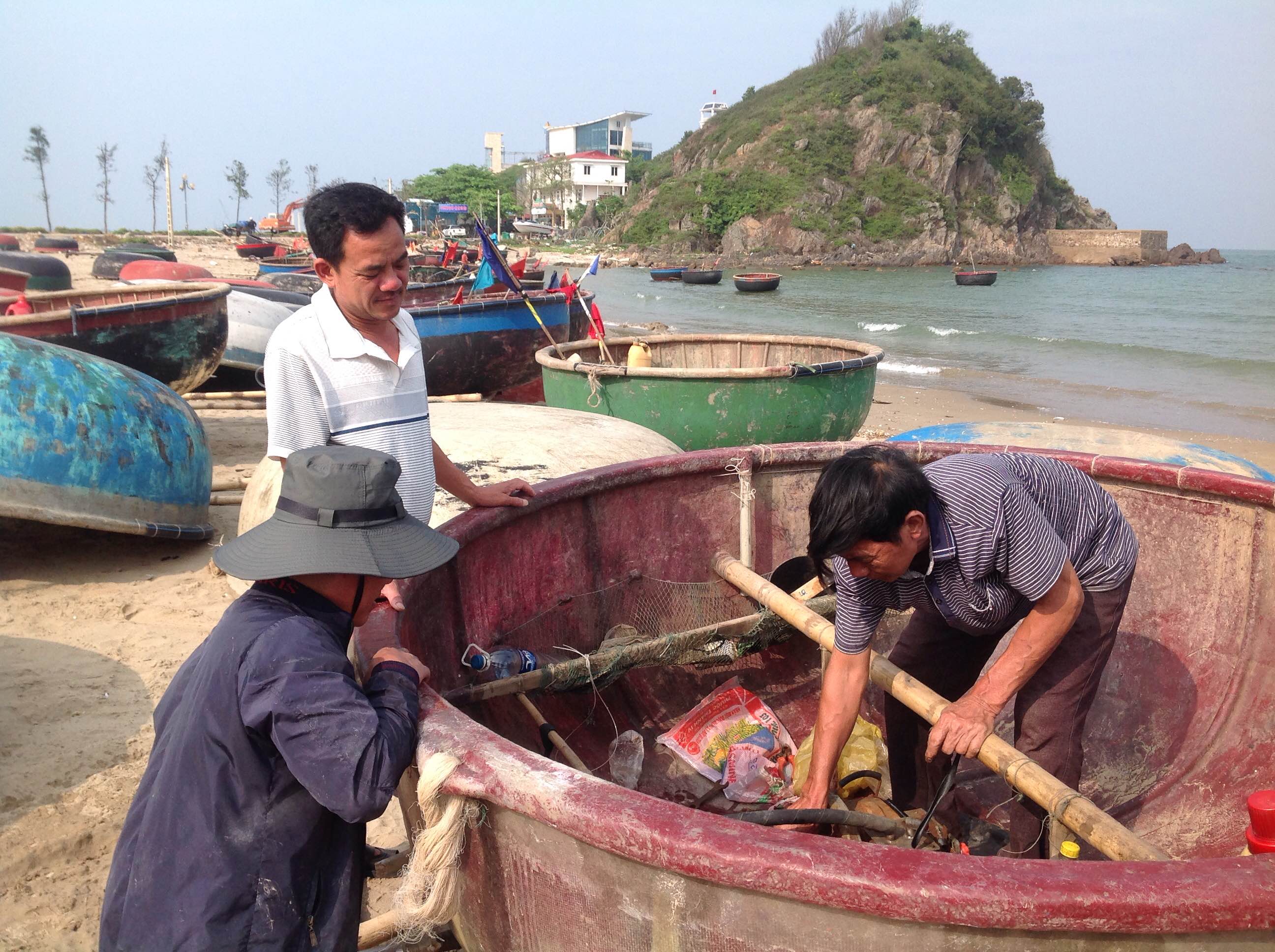 | Những chiếc thuyền thúng phục vụ du khách câu mực là thú vui độc đáo cửa biển Cửa Lò nhiều năm nay. |