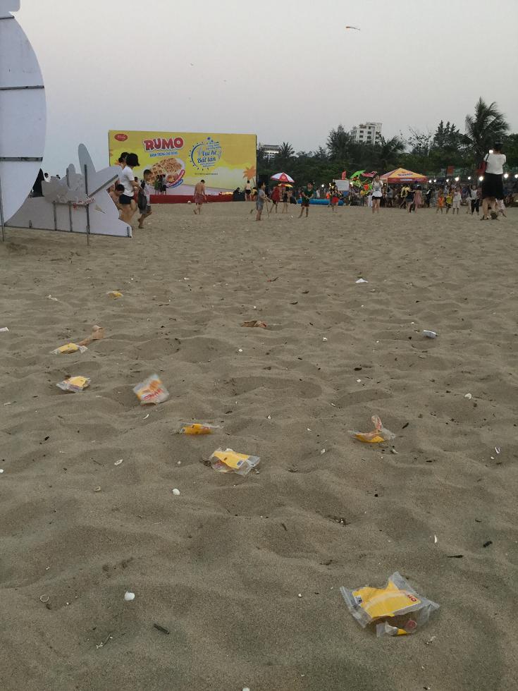 | Với chiêu tiếp thị “tặng bánh trứng chà bông SUMO cho khách” hãng sản xuất bánh RiChy đã vô tình bôi bẩn bãi biển Cửa Lò |