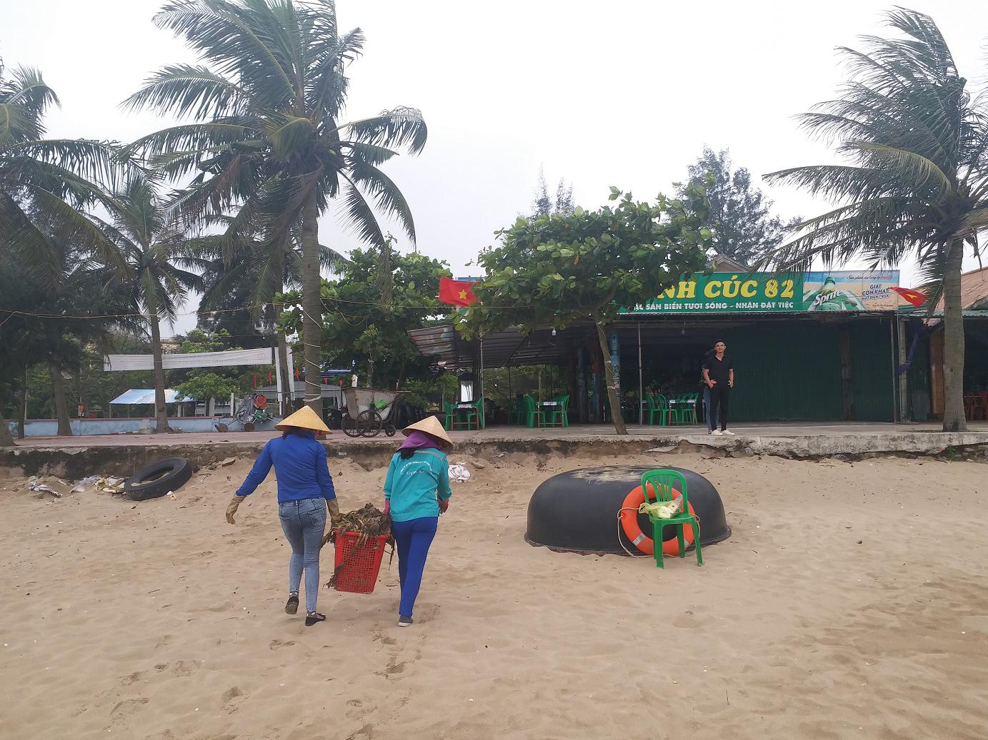 Chị Nguyễn Thị Hà tâm sự: “Mỗi tháng được 3,5 triệu đồng, chúng em không đủ tiền trang trải cho con ăn, học nhưng vẫn phải bám biển, bám việc, vì chúng em không có lựa chọn nào khác. Những lúc gia đình có người đau ốm, phải đi bệnh viện là cả một vấn đề cơ cực anh ạ. Chỉ mong sao người dân về đây nghỉ dưỡng, họ thương chúng em mà có ý thức bảo vệ môi trường, đừng vứt rác bừa bãi”.