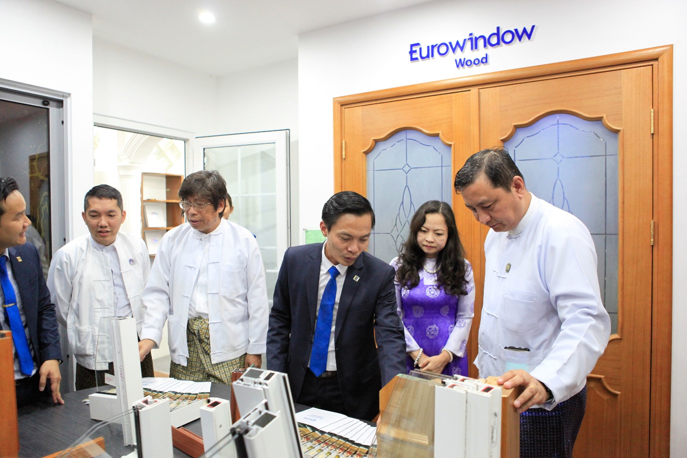 chuyên gia, khách hàng thăm quan showroom Eurowindow tại Myanmar
