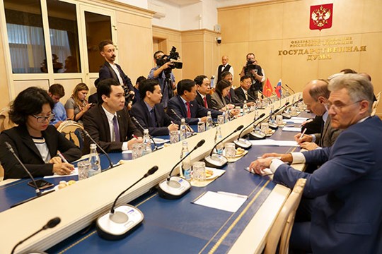 Bên cạnh đó, đồng chí Trần Thanh Mẫn cũng đánh giá cao sự hợp tác chặt chẽ và hiệu quả giữa Quốc hội hai nước. Quốc hội Việt Nam luôn ủng hộ và tham gia tích cực các hoạt động hợp tác liên nghị viện do Liên bang Nga chủ trì như Diễn đàn phụ nữ Á-Âu và mong muốn hai Quốc hội tiếp tục phối hợp chặt chẽ trong khuôn khổ APPF, AIPA, IPU. Đề nghị hai bên tăng cường hợp tác, trao đổi kinh nghiệm trong hoạt động lập pháp; nâng cao vai trò của Nhóm nghị sỹ hữu nghị trong thúc đẩy hợp tác giữa hai Quốc hội, cũng như quan hệ Việt Nam - Liên bang Nga.