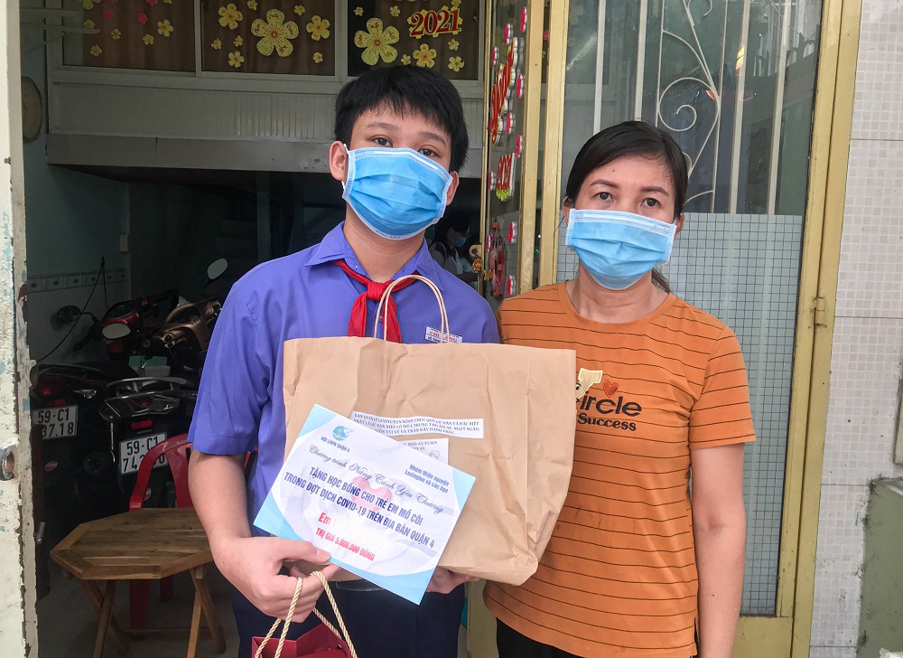 Chương trình "Nâng cánh yêu thương", hỗ trợ 20 phần học bổng với tổng trị giá 100 triệu đồng cho trẻ em mồ côi, bị ảnh hưởng COVID-19 trên địa bàn Quận 4.