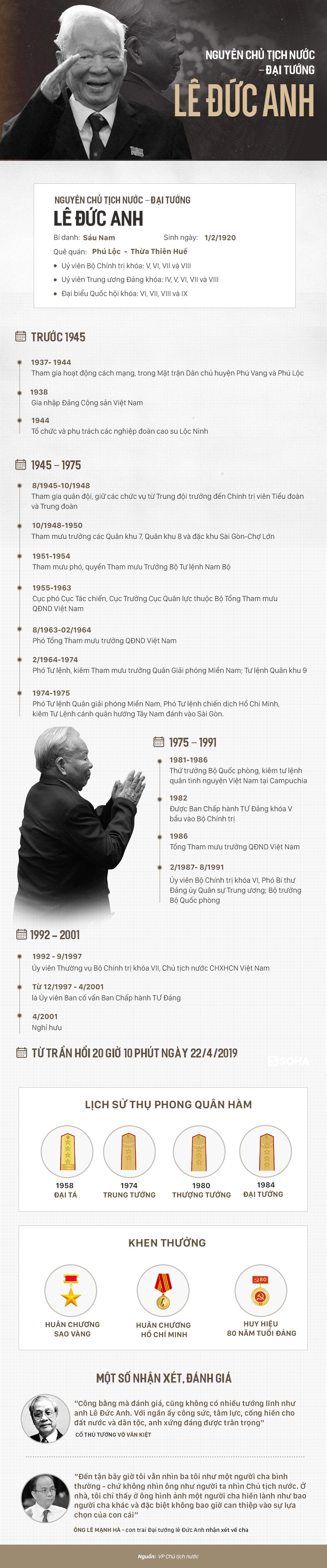Đại tướng Lê Đức Anh, nguyên Chủ tịch nước, đã trút hơi thở cuối cùng vào hồi 20h10 ngày 22/4, tại Hà Nội.