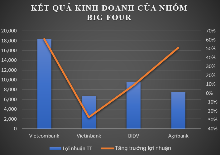Như vậy, trong năm 2018, Vietcombank dẫn đầu nhóm big 4 cả về con số lợi nhuận và tốc độ tăng trưởng lợi nhuận. Vietinbank là ngân hàng kém “may mắn” trong năm 2018 với mức lợi nhuận tăng trưởng âm và tụt về cuối nhóm.