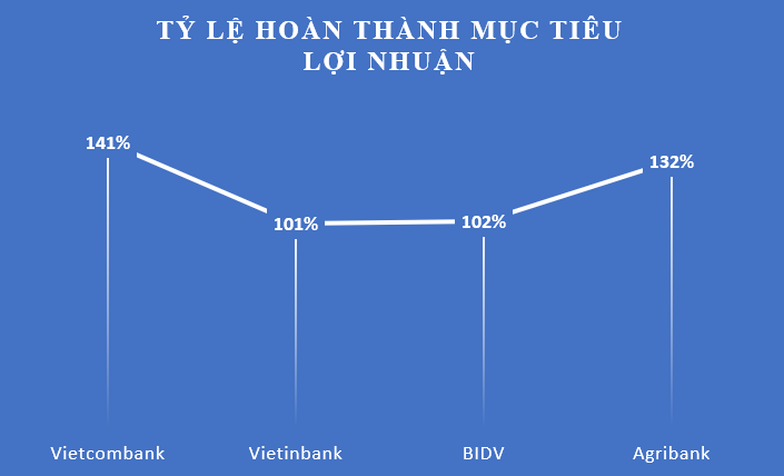 So với mục tiêu lợi nhuận, Vietcombank cũng đã hoàn thành và vượt 41% so với con số mục tiêu lãi 13.000 tỷ đồng mà ngân hàng này đặt ra vào đầu năm 2018. Hay như Agribank lên kế hoạch lãi 5.700 tỷ nhưng nhờ quá trình xử lý nợ xấu diễn ra tốt hơn đã đem về mức lợi nhuận hơn 7.500 tỷ, vượt 45% kế hoạch.