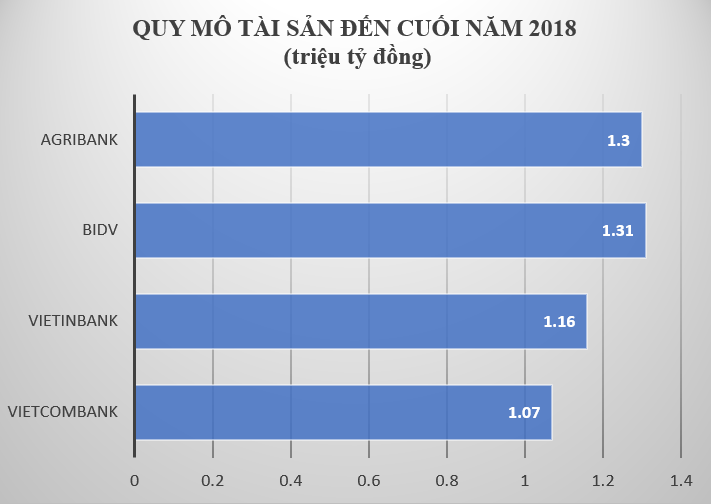 Trong khi đó, tổng tài sản của 2 ông lớn là Vietcombank và Vietinbank lần lượt đạt 1,07 triệu tỷ và 1,16 triệu tỷ.
