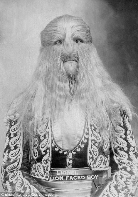 | Một "dị nhân" với gương mặt đầy tóc, mọc dài như sư tử. |