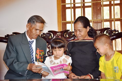 | Ông Y Doanh sống gương mẫu, vui khỏe bên con cháu. |