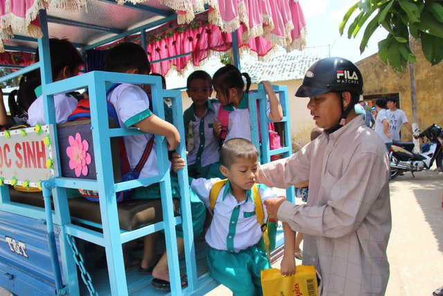 | Nhờ chiếc xe đưa đón học sinh của anh Hội, nhiều năm qua trên địa bàn xã Phú Hội không còn trường hợp các em học sinh bỏ học vì không có điều kiện đến trường |