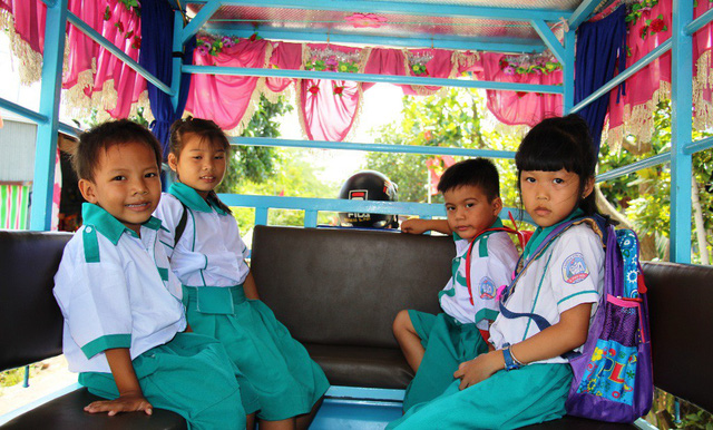 Thấy tình cảnh đó, suốt gần 10 năm qua, anh Nguyễn Văn Hội (41 tuổi, trú ấp Phú Nhơn, xã Phú Hội, huyện An Phú, tỉnh An Giang) đã không ngần ngại bỏ công sức, chạy xe máy đưa đón hàng trăm em học sinh đến trường. Nhiều lúc anh Hội phải chạy xe ôm kiếm tiền… đổ xăng để chiếc xe đưa rước học sinh của anh được hoạt động xuyên suốt.