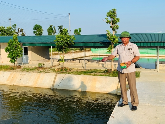 Ông Ý đang kiểm tra các hồ nuôi cá. Ảnh: TQ