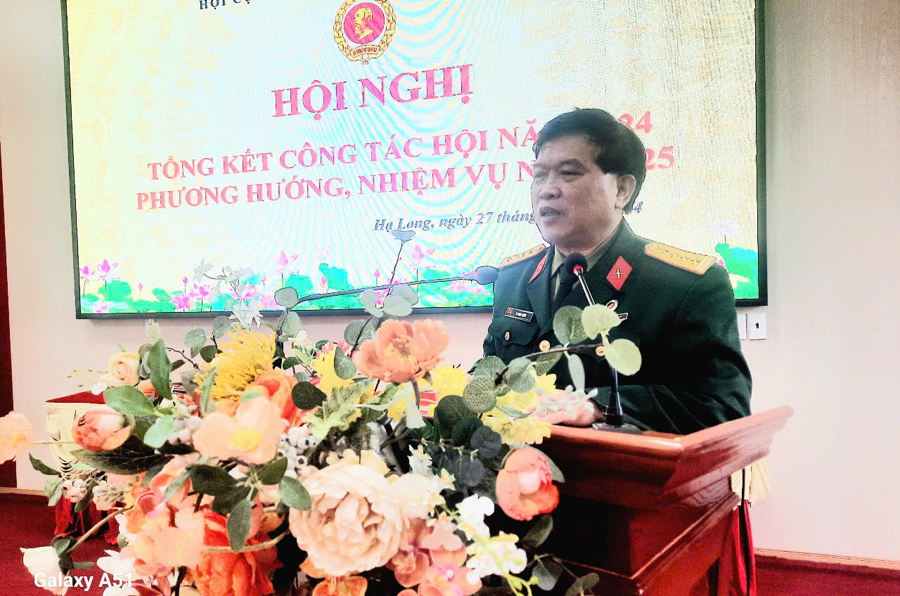 Đồng chí Lê Minh Tuyến - Chủ tịch hội CCB thành phố Hạ Long báo cảo hoạt động của Hội trong năm 2024