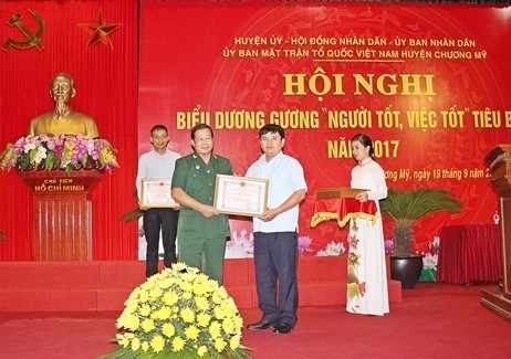 | Cựu chiến binh Nguyễn Minh Đức được Ủy ban nhân dân huyện Chương Mỹ biểu dương Người tốt việc tốt năm 2017. |