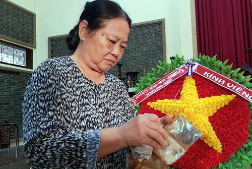 | Bà Nga vợ liệt sỹ An xúc động nhận lại kỷ vật của chồng |