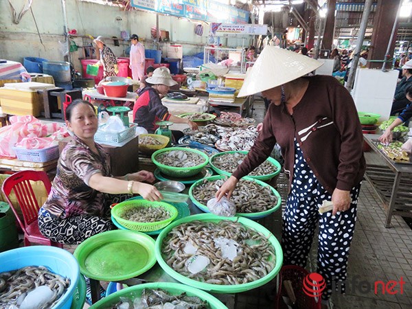 Thế nhưng khi chúng tôi vào khu thực phẩm tươi sống thì chủ một gian hàng cá, chị Lê Thị Cẩm Hồng cho biết, chị mở hàng từ sáng sớm nhưng sốt ruột ngồi chờ mãi mà... chẳng thấy “cá biển an toàn” do Sở NN-PTNT đưa xuống. Vì vậy chị phải lấy một ít cá, tôm, ghẹ nước ngọt để bán chung với số cá biển chị lấy từ các đầu nậu ở chợ thủy sản đầu mối Thọ Quang.