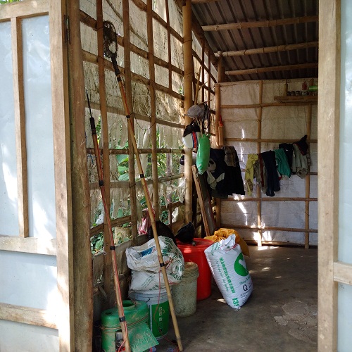 | Căn nhà tranh tre xập xệ này là nơi sinh sống của 4 nhân khẩu của gia đình anh Đỗ Kim Vũ |