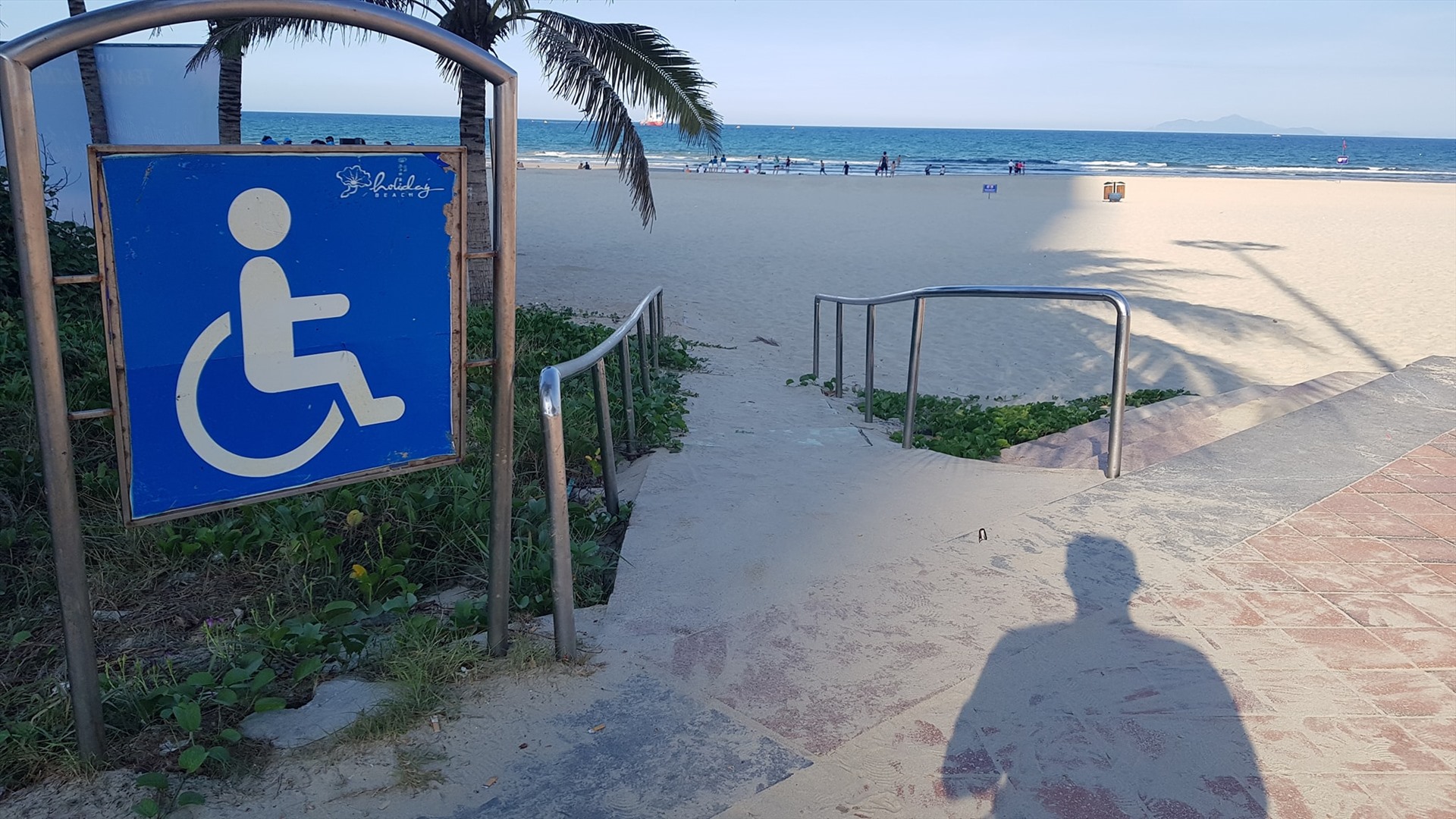 Sau khi nhận được góp ý của ông Bùi Văn Tuấn, con đường cho người khuyết tật di chuyển xuống bãi biển đã được lót lại các tấm ván.