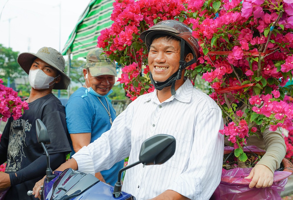 "Năm nào gia đình tôi cũng chở hoa bằng ghe lớn đi theo đường sông về Quận 8 này để tham gia mua bán tại chợ hoa. Một phần thì mình mua bán được sẽ có lợi nhuận, một phần góp làm đa dạng các loại cây kiểng, chậu cảnh cung cấp cho người dân TP Hồ Chí Minh, du khách có thêm sự lựa chọn. Kinh tế khó khăn nên nhiều nhà vườn như chúng tôi tự giảm giá thành sản phẩm, mong là năm nay sẽ bán gần hết hoặc hết số hoa đã mang lên...” - Tiểu thương Huỳnh Thị Kiều (ngụ Bến Tre) chia sẻ.