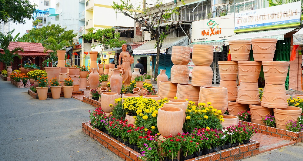 Dọc Tuyến đường Lê Văn Của (Quận 8) được làm nổi bật với không gian trang trí về Con đường nghệ thuật Gốm Đỏ của tỉnh Vĩnh Long, các gian hàng đặc sản từ nhiều tỉnh miền Tây, khu tiểu cảnh hoa Đà Lạt... tạo nên điểm nhấn mạnh mẽ, thu hút nhiều du khách checkin.