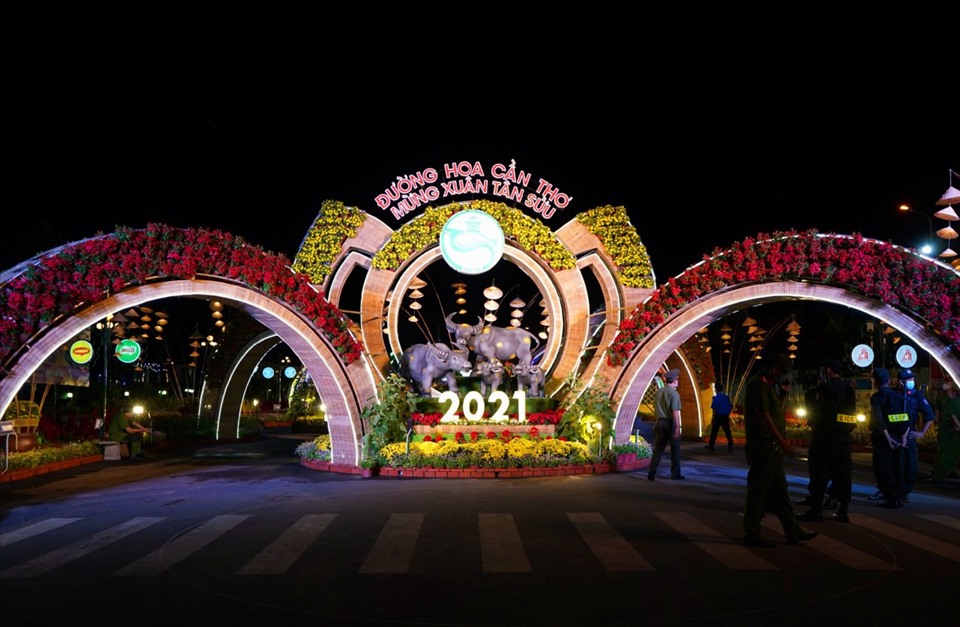 Sau thời gian dài thực hiện, tối ngày 8/2 (27 Tết), UBND Thành phố Cần Thơ đã tổ chức lễ khai mạc đường hoa và đèn đường nghệ thuật Mừng Đảng quang vinh - Mừng xuân Tân Sửu năm 2021. Biểu tượng trâu cũng được đặt trang trọng tại đường hoa.