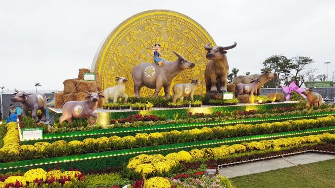 Biểu tượng trâu xuất hiện tại đường hoa Nguyễn Văn Trị (Đồng Nai) diễn ra từ ngày 7/2 đến 17/2 (tức từ 26 tháng Chạp đến mùng 6 Tết). Với chủ đề "Mừng Đảng - mừng Xuân, mừng Biên Hòa phát triển, xứng tầm đô thị loại I”, đường hoa có tổng chiều dài 1.100 m được trang trí dọc theo công viên Nguyễn Văn Trị (từ chân cầu Hóa An kéo dài đến UBND tỉnh).