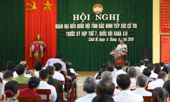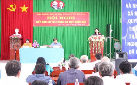 Tại buổi tiếp xúc, cử tri nêu một số ý kiến, kiến nghị về các vấn đề liên quan đến phát triển kinh tế, an sinh, phúc lợi xã hội, bảo vệ môi trường, bảo đảm trật tự, an toàn giao thông và xây dựng, hoàn thiện hệ thống pháp luật.