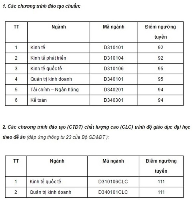 ĐH Kinh tế sẽ công bố danh sách thí sinh đạt điểm ngưỡng tuyển và ưu tiên xét tuyển trong tuần tới. Trường sẽ gửi Giấy báo nhập học cho thí sinh đạt điểm ngưỡng tuyển trước ngày 25/7/2016