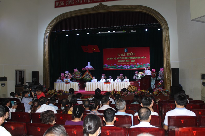 Sáng 5-10-2022, tại Trung tâm Văn hóa Thể thao thanh thiếu niên tỉnh Nam Định, Hội Người mù tỉnh Nam Định đã long trọng tổ chức Đại hội đại biểu lần thứ IX, nhiệm kỳ 2022-2027. Về dự đại hội có các ông: Phạm Viết Thu, Chủ tịch Hội Người mù Việt Nam, Trần Lê Đoài, Phó Chủ tịch UBND tỉnh Nam Định; đại diện lãnh đạo các Sở, Ban, ngành, đoàn thể, Ủy ban MTTQVN tỉnh Nam Định; đại diện lãnh đạo Hội Người mù thành phố Hà Nội, các tỉnh Ninh Bình, Hà Nam, Thái Bình, Hưng Yên, Vĩnh Phúc; lãnh đạo các huyện, thành phố của tỉnh Nam Định; đại diện các Hội đặc thù, các nhà tài trợ cùng 120 đại biểu đại diện cho 2.985 hội viên người mù toàn tỉnh.