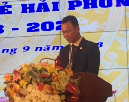 | Chủ tịch Hội DN trẻ HP Nguyễn Đức Cảnh khẳng định quyết tâm xây dựng Hội vững mạnh. |