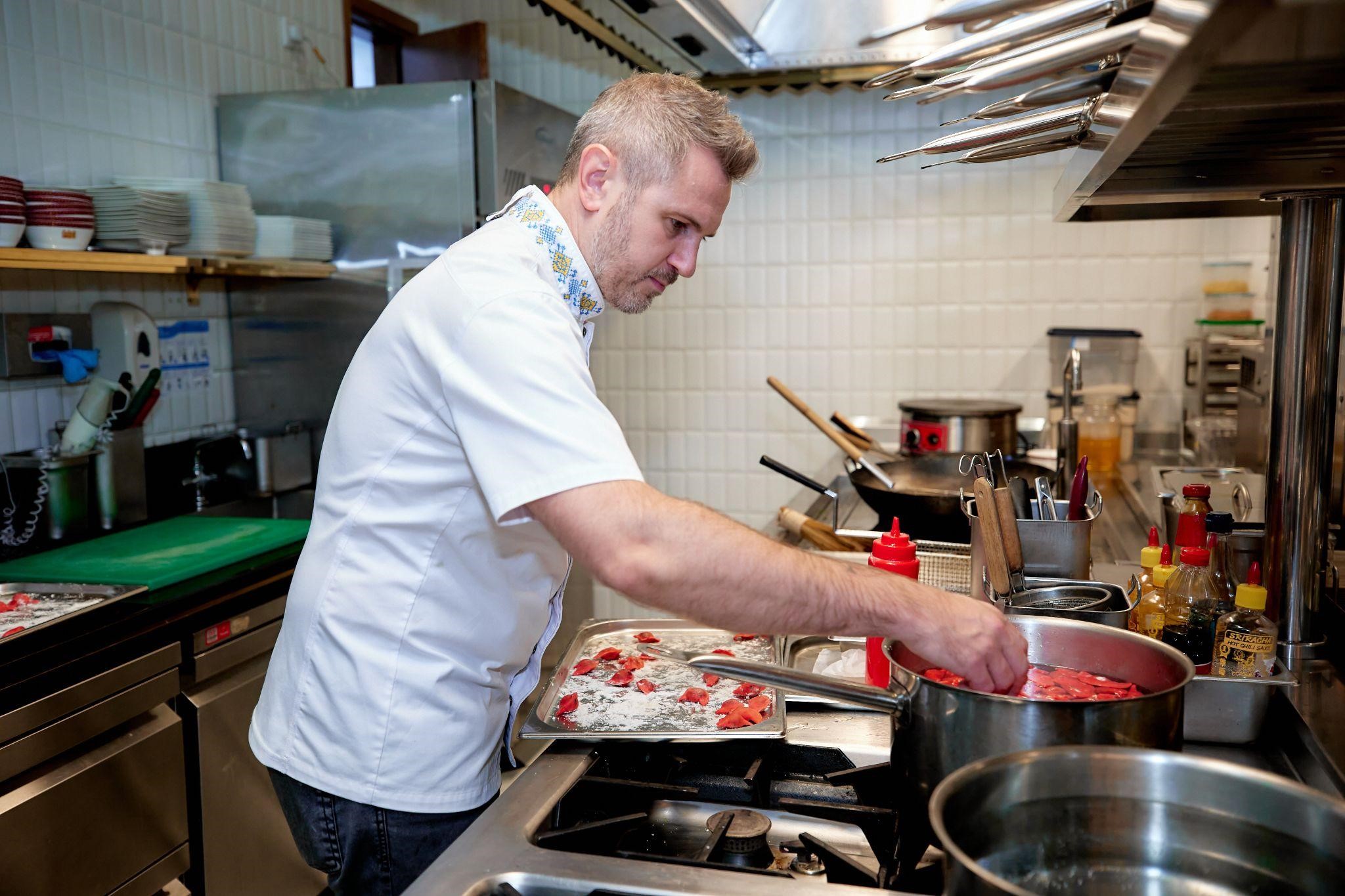 Dưới đôi tay khéo léo của Yurii, những món ăn với nghệ thuật sắp đặt cầu kỳ lần lượt sẽ được trình diễn trên bàn tiệc, dẫn dắt và nuông chiều các giác quan, từ màu sắc quyến rũ của bánh bao Varenyky, hương thơm thanh nhẹ của súp borsch và vị béo ngậy, mềm tan của bơ hảo hạng bên trong gà kyiv giòn rụm.