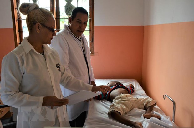 | Các bác sỹ Cuba khám cho trẻ em tại Làng trẻ em mồ côi tàn tật Human DreamsTabainia. (Ảnh: Đình Lượng/TTXVN) |