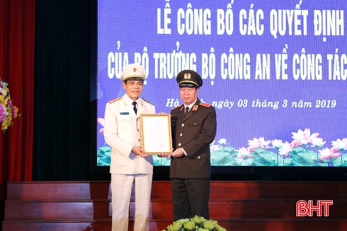 Thứ trưởng Bộ Công an - Thượng tướng Bùi Văn Nam trao quyết định bổ nhiệm Giám đốc Công an tỉnh Hà Tĩnh cho Đại tá Võ Trọng Hải. (Ảnh: Báo Hà Tĩnh)