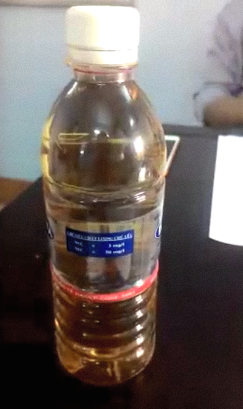 | Mẫu nước ngầm người dân cung cấp cho cơ quan chức năng kiểm nghiệm |