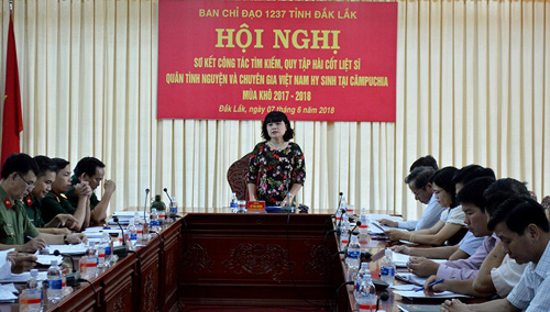 Chủ trì Hội nghị, Phó Chủ tịch UBND tỉnh H’Yim Kđoh đánh giá cao những nỗ lực của Đội K51 trong việc thực hiện nhiệm vụ được giao trong mùa khô 2017 – 2018. Phó Chủ tịch UBND tỉnh nhấn mạnh, tìm kiếm quy, tập hài cốt liệt sĩ quân tình nguyện và chuyên gia Việt Nam hy sinh tại Campuchia là nhiệm vụ hết sức thiêng liêng, quan trọng.
