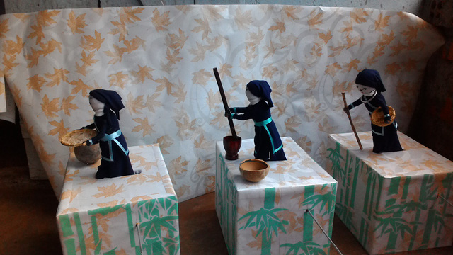 Ngoài ra, em còn quan sát rất kỹ các hoạt động lao động sản xuất của người dân. Rồi tất cả được Hưng cẩn thận cắt tỉa, sắp xếp để mô phỏng thành những con rối. Đặc biệt, những con rồi được làm bằng bông và vải vụn được em mặc cho trang phục truyền thống của người Nùng, sinh hoạt sản xuất đều giống với đời sống thực tế của bà con đồng bào Nùng.