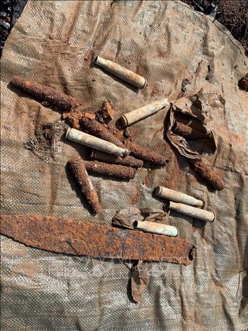 Một số di vật được tìm thấy cùng hài cốt liệt sỹ. Ảnh: TTXVN phát.