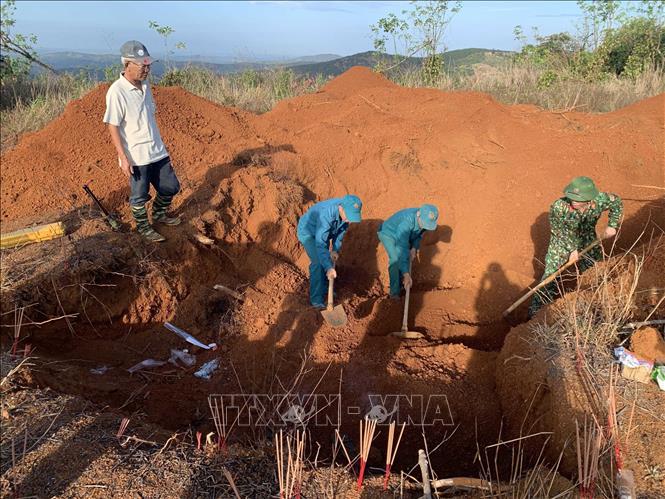 Cơ quan chức năng và cựu chiến binh tiến hành quy tập mộ liệt sỹ. Ảnh: TTXVN phát.