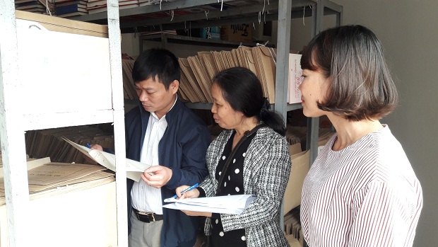 Các chuyên viên Cục người có công kiểm tra công tác lưu trữ hồ sơ tại Vĩnh Phúc.