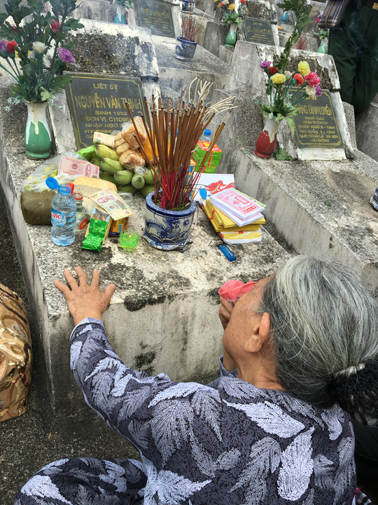 Và kia, người mẹ già 83 tuổi vật vã bên mộ và gọi tên con mình - một liệt sĩ đã hi sinh trong trận chiến chống quân Trung Quốc năm 1985 để bảo vệ biên cương.