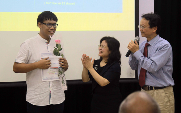 | Apichit nhận giải thưởng bài viết đoạt giải nhất và bài viết được yêu thích nhất trong cuộc thi - Ảnh: CHU HÀ LINH |