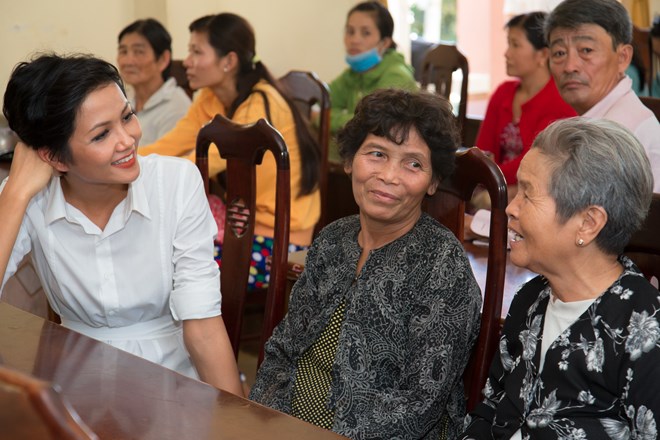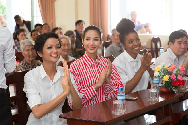 Hoa hậu H’hen Niê, Á hậu Hoàng Thùy, Người đẹp Thể thao Huỳnh Thị Cẩm Tiên giản dị trong trang phục áo sơmi, trò chuyện cùng người dân. Sau khi cuộc thi Hoa hậu Hoàn vũ Việt Nam kết thúc, các người đẹp dành nhiều thời gian cho các hoạt động thiện nguyện vì cộng đồng. Đây cũng là một trong những định hướng mà tổ chức Hoa hậu Hoàn vũ Việt Nam đang hướng đến, nhằm tôn vinh những giá trị nhân ái trong cuộc sống.