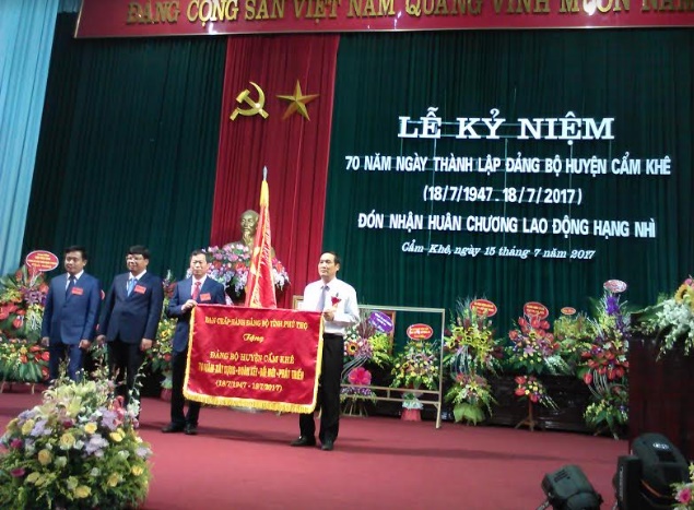 HOANHAP.VN - Đó là dòng chữ được thêu trên bức trướng mà Ban Chấp hành Đảng bộ tỉnh Phú Thọ tặng Đảng bộ Cẩm Khê trong buổi Lễ Kỷ niệm 70 năm ngày thành lập Đảng bộ huyện Cẩm Khê (18/7/1947 – 18/7/2017) và Đón nhận Huân chương Lao động hạng Nhì.