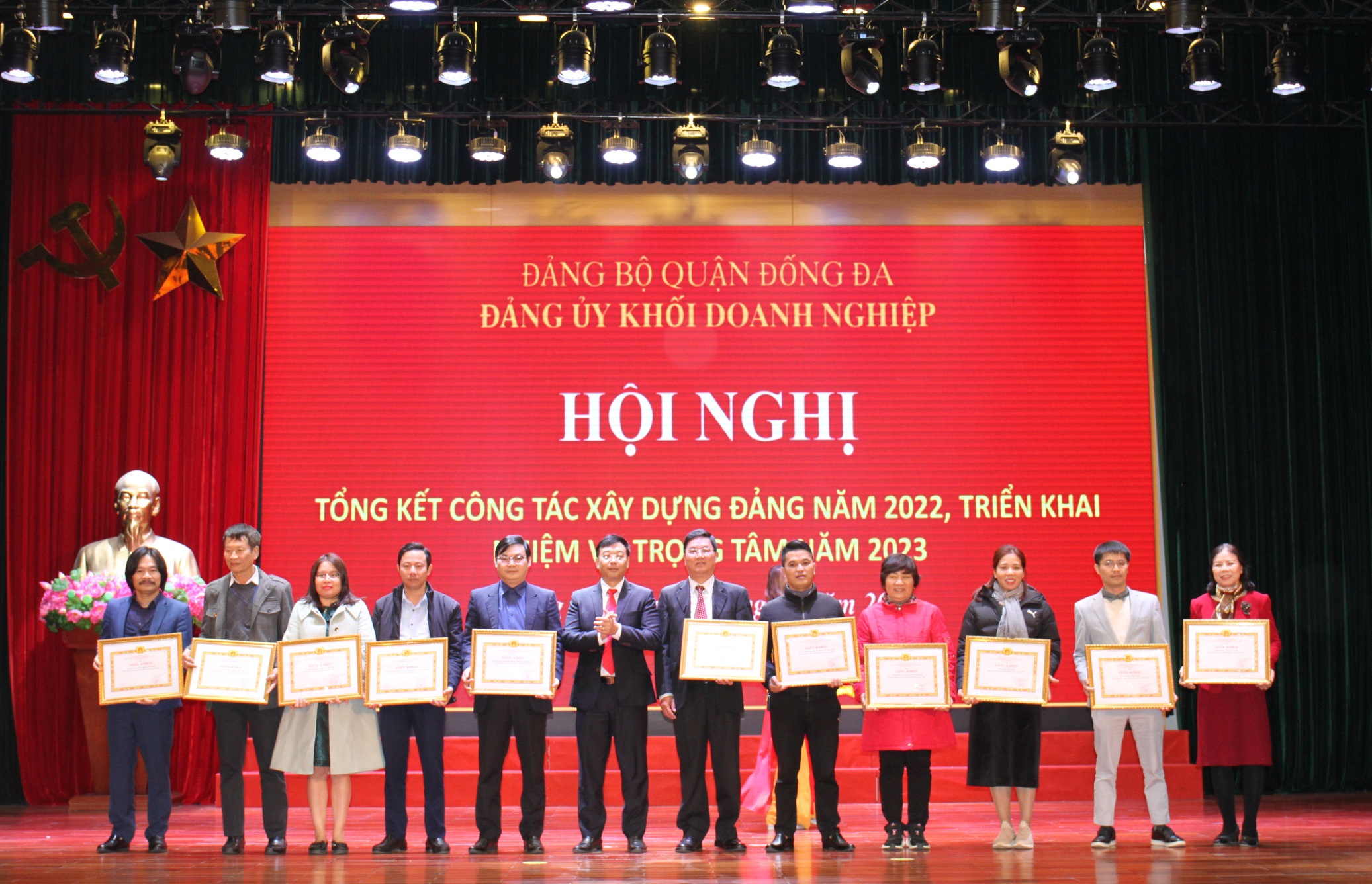 Tăng cường công tác tuyên truyền thực hiện nếp sống văn minh, đẩy mạnh phòng, chống cháy nổ và chăm lo cho người lao động, các đối tượng chính sách… tại các đơn vị trong những ngày Tết cổ truyền dân tộc và dịp kỷ niệm các ngày lễ lớn. Cũng tại hội nghị, Đảng bộ Khối doanh nghiệp quận Đống Đa đã trao tặng bằng khen cho các Chi bộ và Đảng viên hoàn thành xuất sắc nhiệm vụ năm 2022.