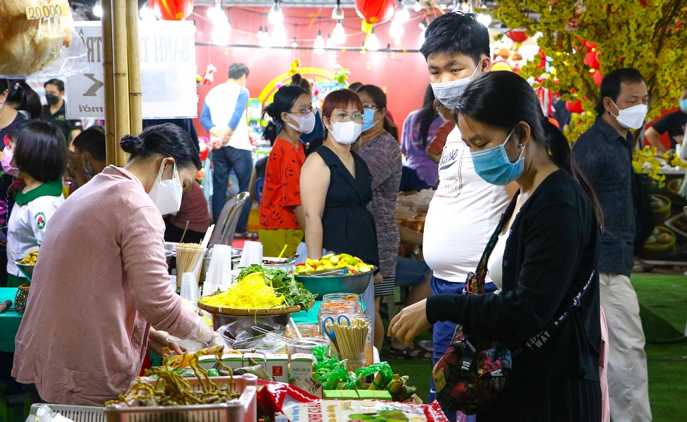 Ghi nhận của Phóng viên Hòa Nhập vào chiều ngày 14/2, rất đông người dân đến tham quan, thưởng thức ẩm thực và văn nghệ tại “Không gian văn hóa ẩm thực Việt – Hoa”. Để đảm bảo công tác phòng chống dịch COVID-19 và tạo được sự an tâm cho người dân khi tham gia lễ hội, Ban tổ chức cũng đã bố trí và thực hiện công tác phòng chống dịch an toàn theo quy định hiện hành.