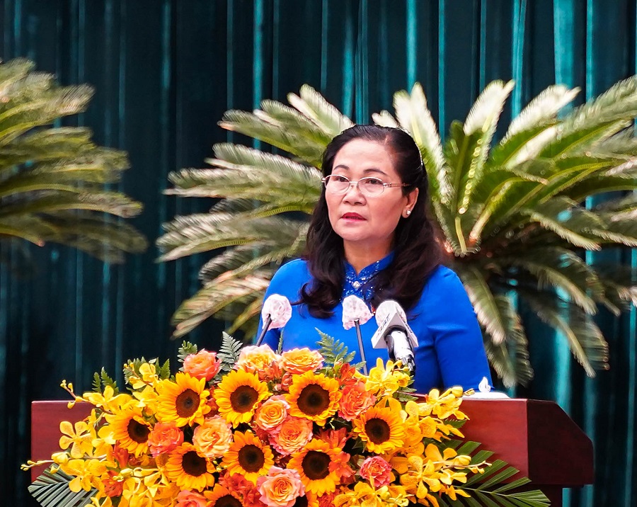 Bà Nguyễn Thị Lệ - Chủ tịch HĐND TP Hồ Chí Minh phát biểu khai mạc.