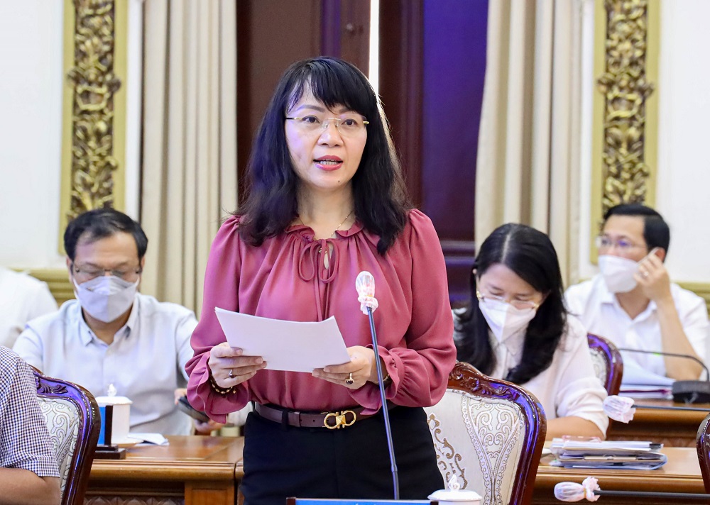 Bà Phạm Thị Hồng Hà - Thành ủy viên, Ủy viên Ban Giám đốc Sở Tài chính TP.HCM báo cáo tại phiên họp.