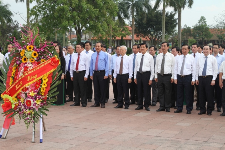 Chiều cùng ngày, Tổng Bí thư Nguyễn Phú Trọng, nguyên Chủ tịch nước Trương Tấn Sang, Phó Thủ tướng Thường trực Chính phủ Trương Hòa Bình đã đến đặt vòng hoa, dâng hương tri ân các anh hùng liệt sĩ tại Thành cổ Quảng Trị.