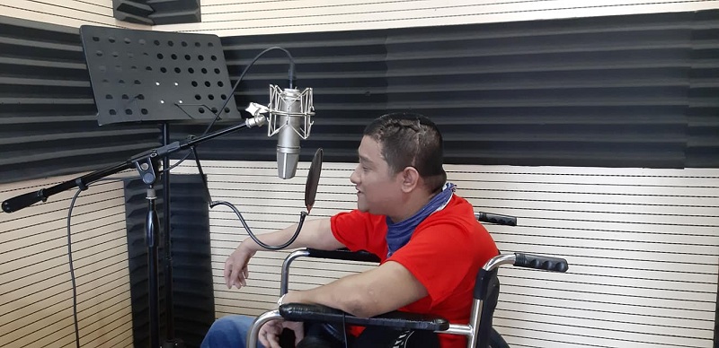 Tuấn thu âm các bài hát do mình sáng tác, với nick name “Tuấn tình cảm”. (Ảnh: Nguồn Internet)